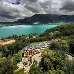This Annecy hotel has an excellent location 18 minutes' walk from the scenic lakeside park "Gardens of Europe". At the comfortable Tresoms Annecy you'll be 400 metres from Plage des Marquisats. Nature lovers will appreciate the proximity to Lake Annecy, which is approximately 5 minutes' walk away. Cultural experiences in the area feature the Museum of Animation Film, situated within a few blocks of the accommodation. Les Tresoms Lake And Spa Resort is located 5 km from Meythet airport and 150 m from Colmyr bus stop.